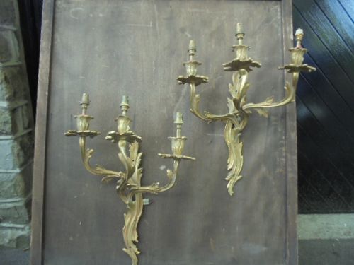 Pair of Louis XVI Style Triple Branch Wall Lights c.1920