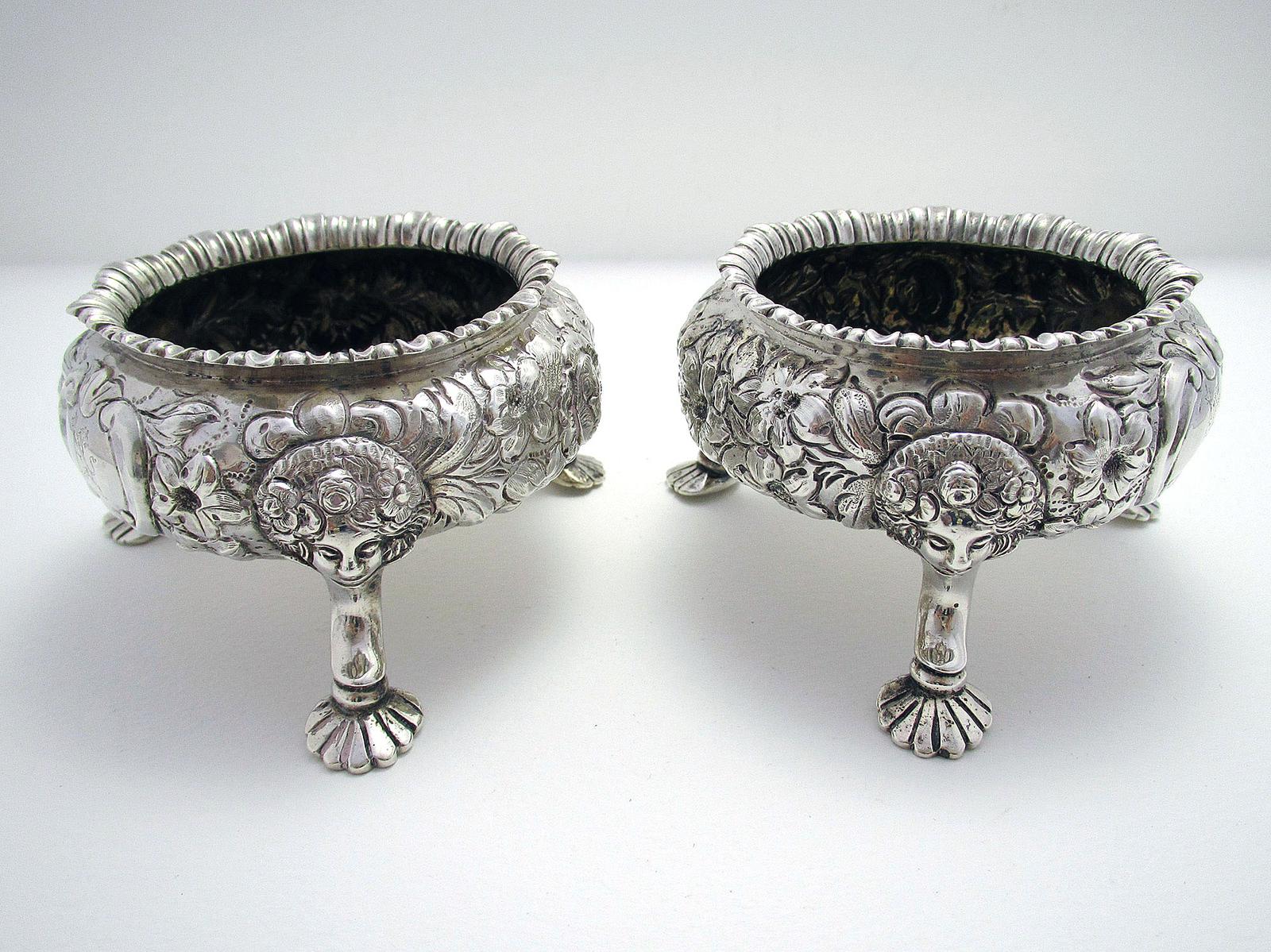 Pair of Magnificent Antique Victorian Rococo Solid Sterling Silver English Salts 1851