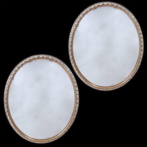 Pair of Magnificent Oval Giltwood & Lozenge Irish Mirrors