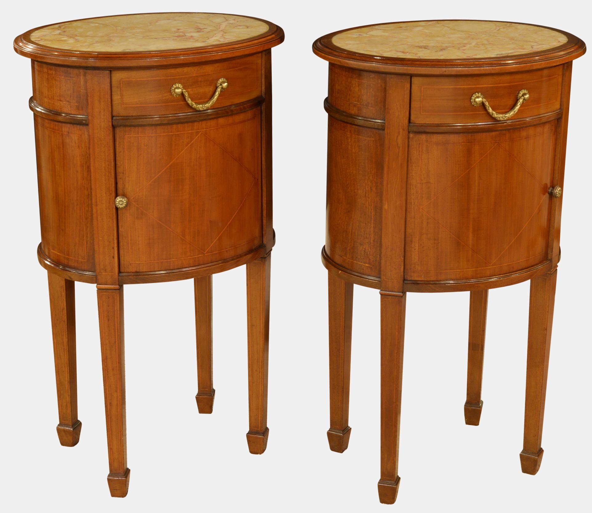 Pair of Mahogany Bedside Chests with Marble Tops c.1900