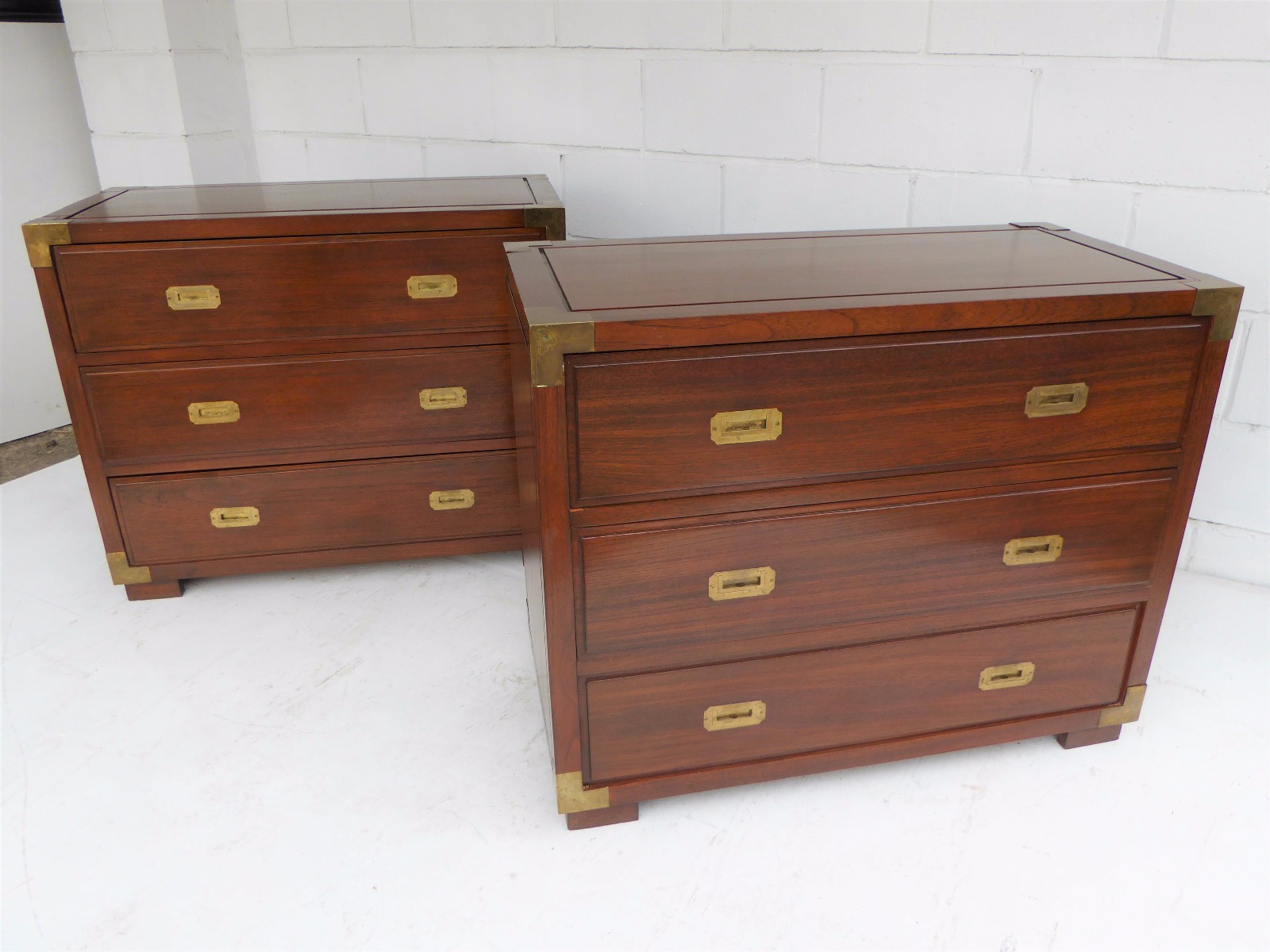 Pair of Mahogany & Brass Bound Campaign Style Chests