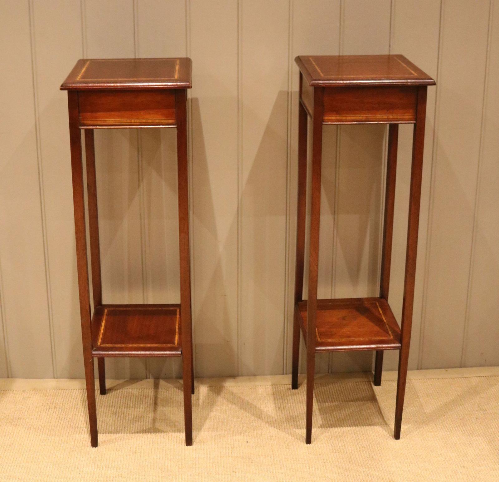 Pair of Mahogany Inlaid Plant Stands (1 of 10)