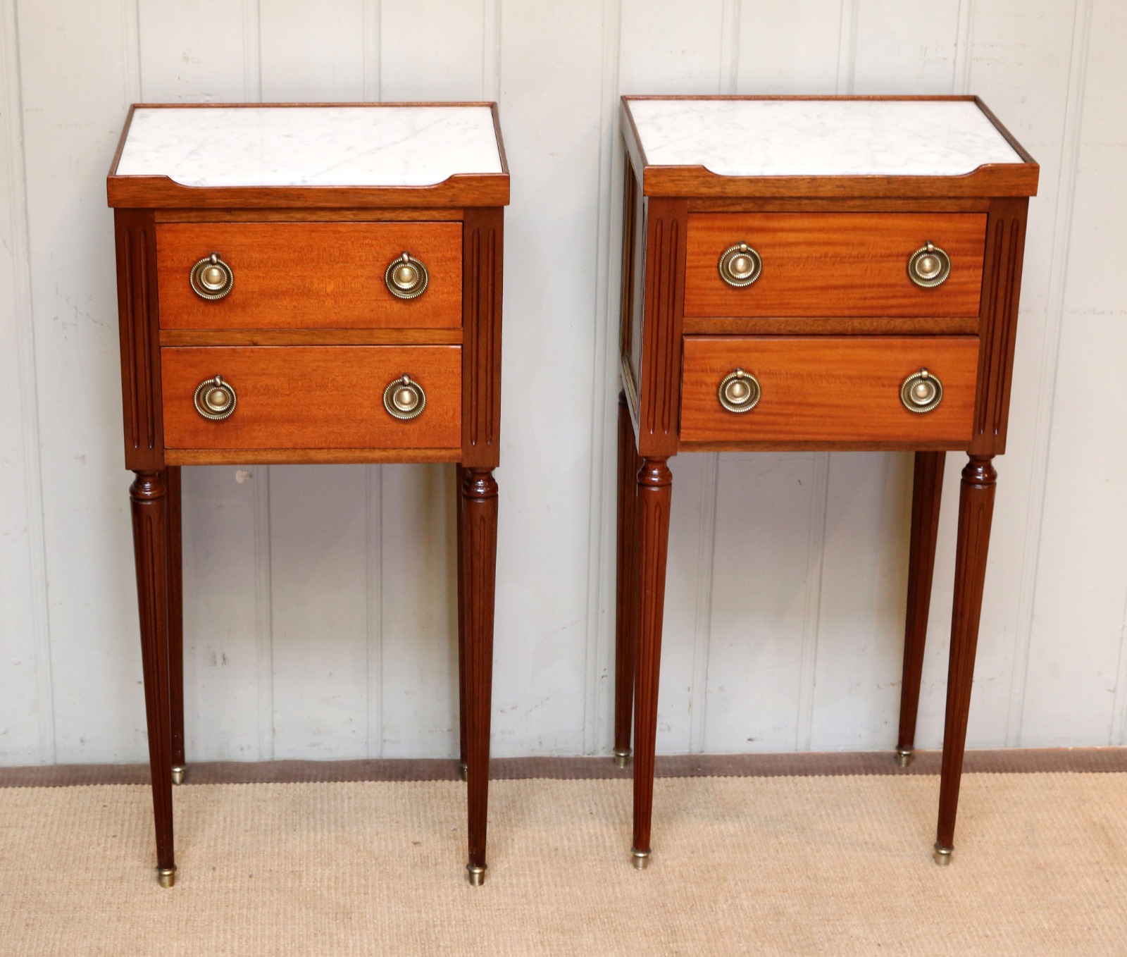 Pair of Mahogany Marble Top Bedside Cabinets (1 of 1)