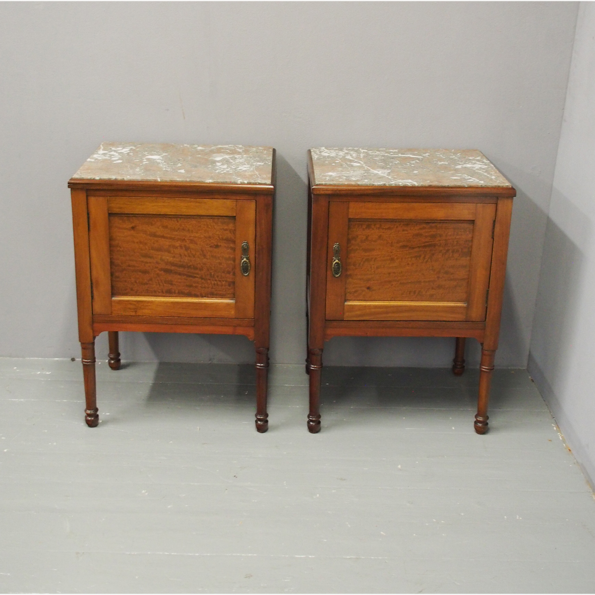 Pair of Mahogany & Marble Top Bedside Cabinets