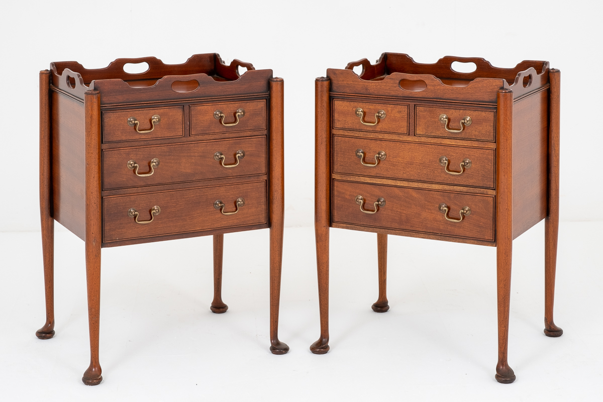 Pair of Mahogany Queen Anne Style Bedside Cabinets