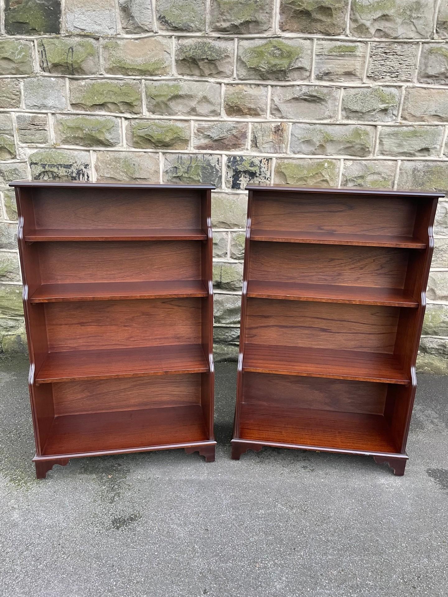 Pair of Mahogany Waterfall Open Bookcases Bookshelves