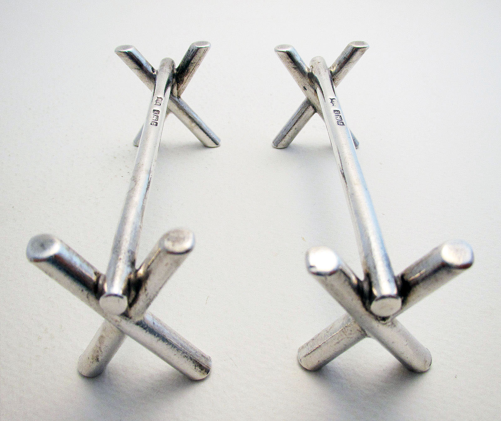 Pair of Mappin & Webb Solid Sterling Silver Modernist Arts & Crafts Antique Knife Rests 1902