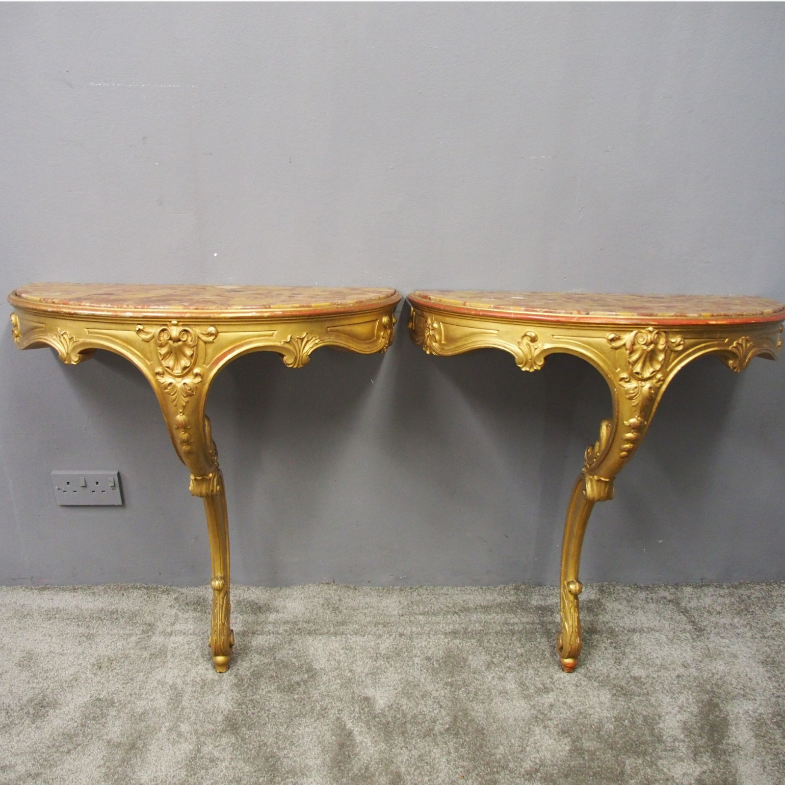 Pair of Marble Top & Gilded Console Tables (1 of 8)