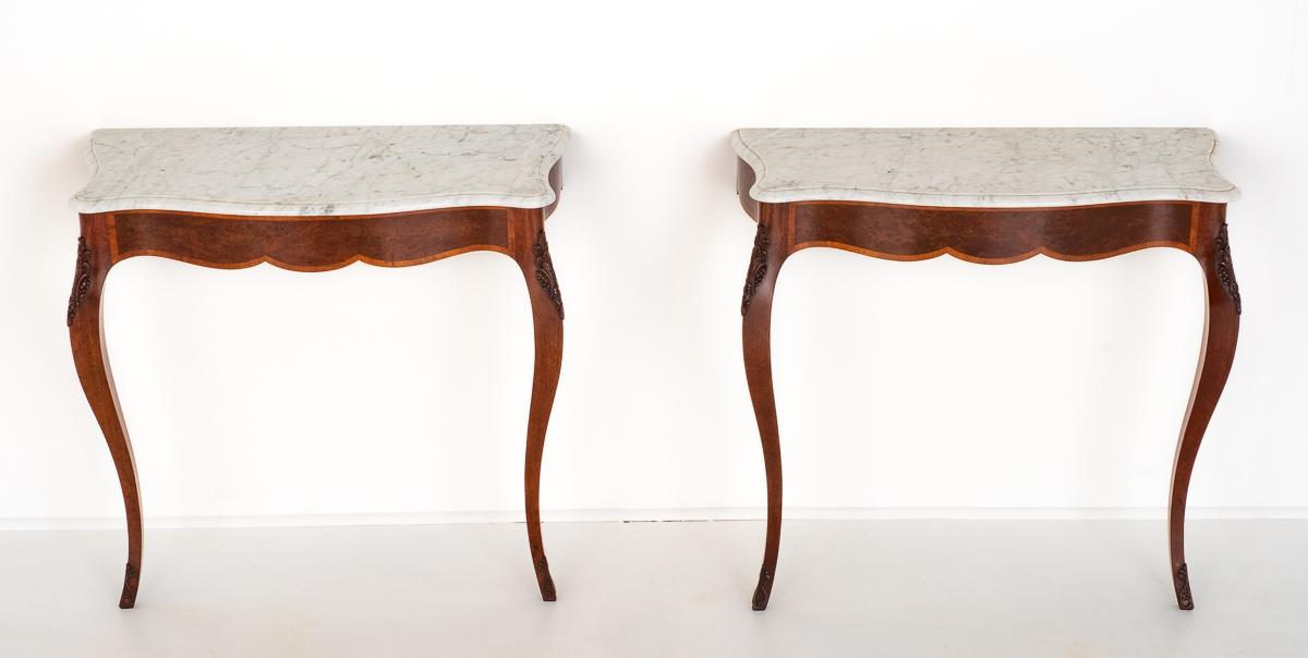 Pair of Marble Top Mahogany Console Tables (1 of 7)