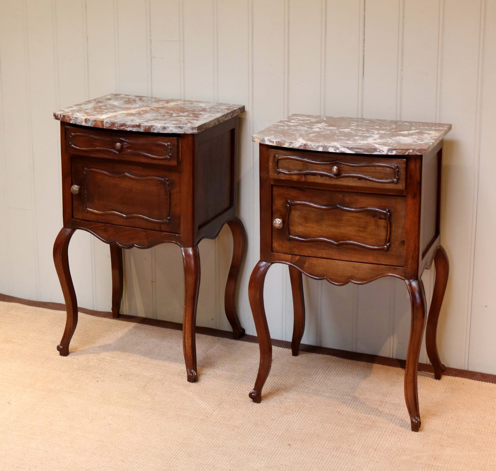 Pair of Marble Top Walnut Bedside Cabinets c.1920