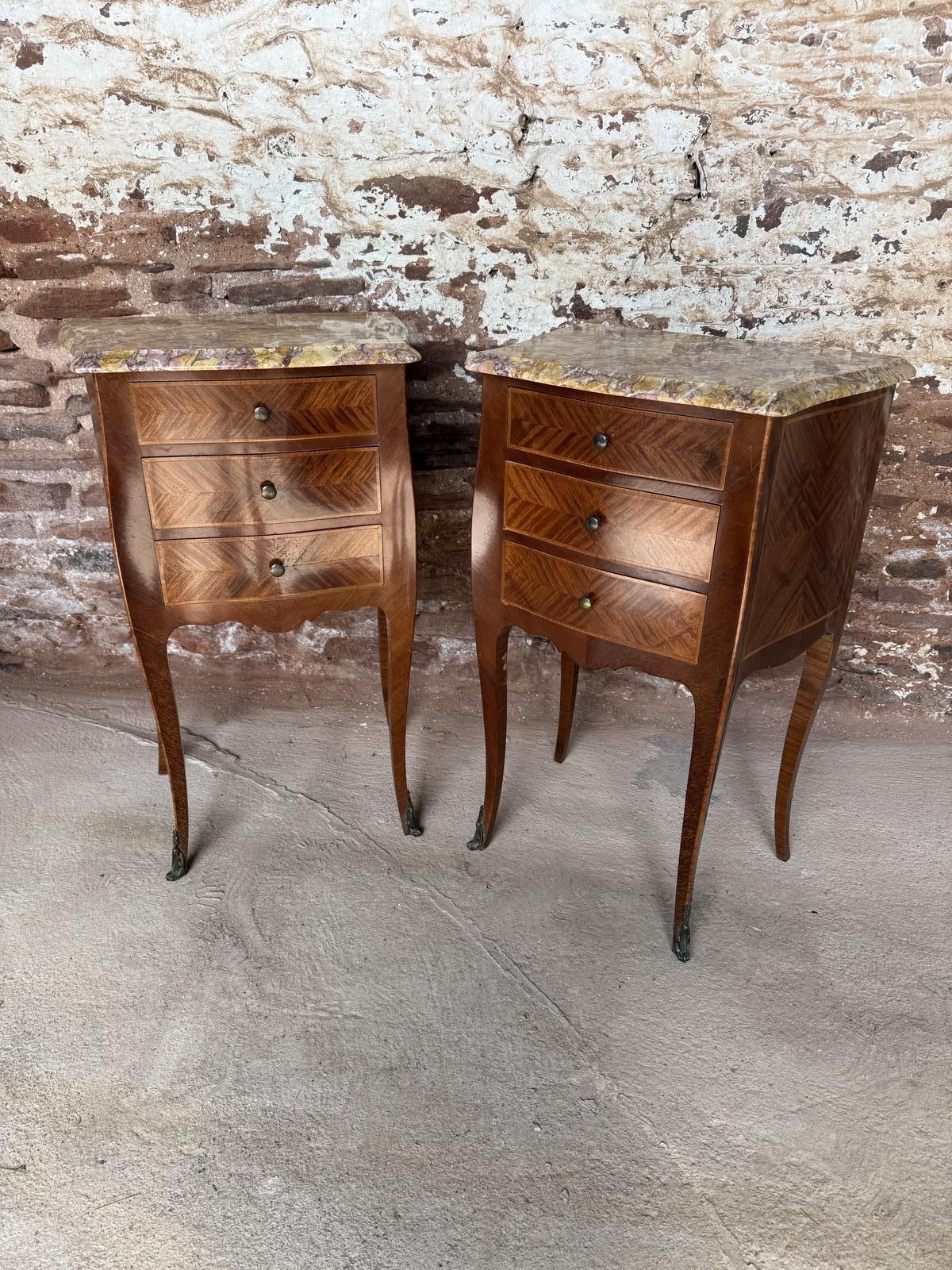 Pair of Marble Topped Bedside Cabinets