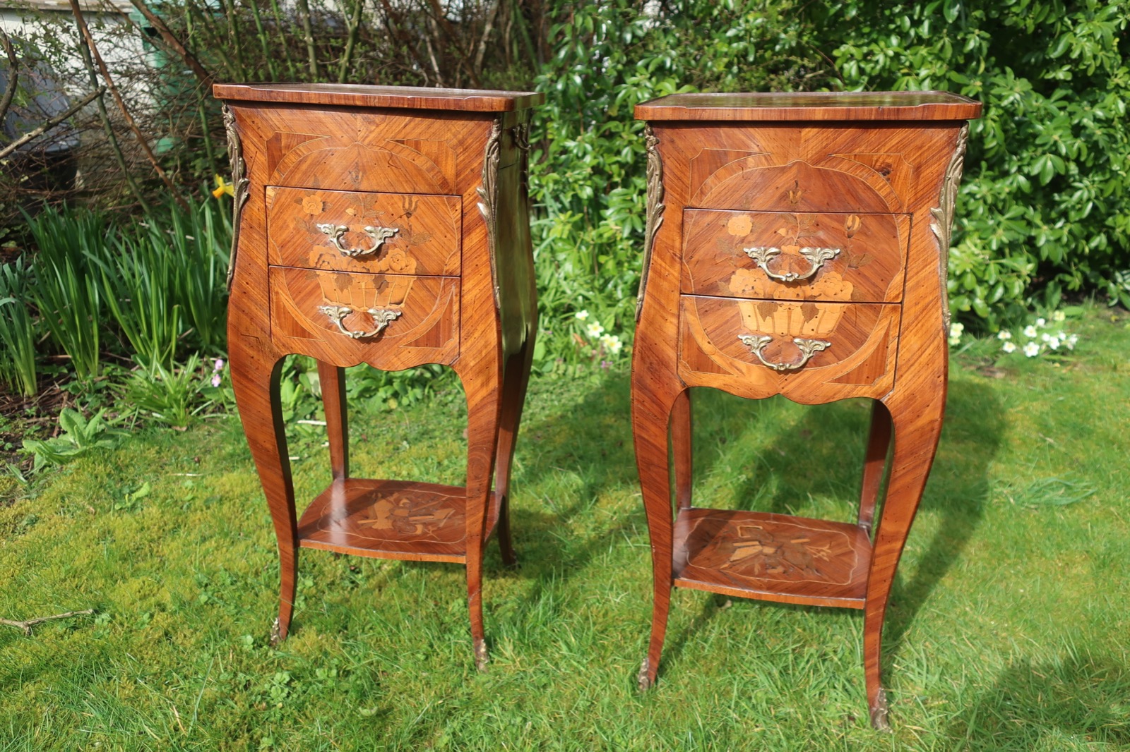 Pair of Marquetry Bedside Tables c.1920 (1 of 7)