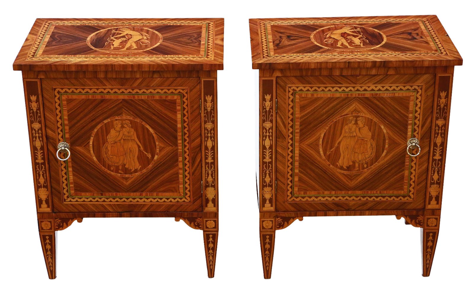 Pair of Marquetry Bedside Tables Cupboards Mid-Century