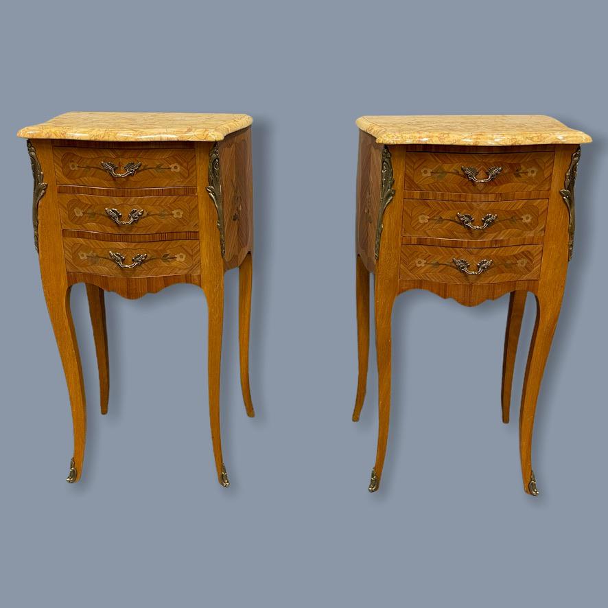 Pair of Marquetry & Marble Top Side Tables (1 of 8)