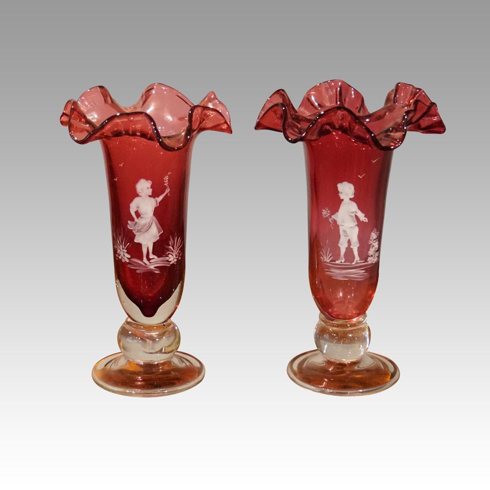 Pair of Mary Gregory Cranberry Glass Vases (1 of 5)