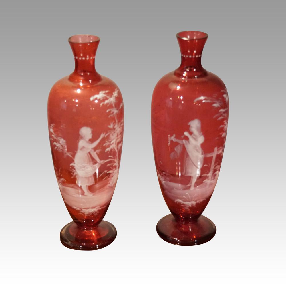 Pair of Mary Gregory Cranberry Glass Vases Maidens (1 of 3)