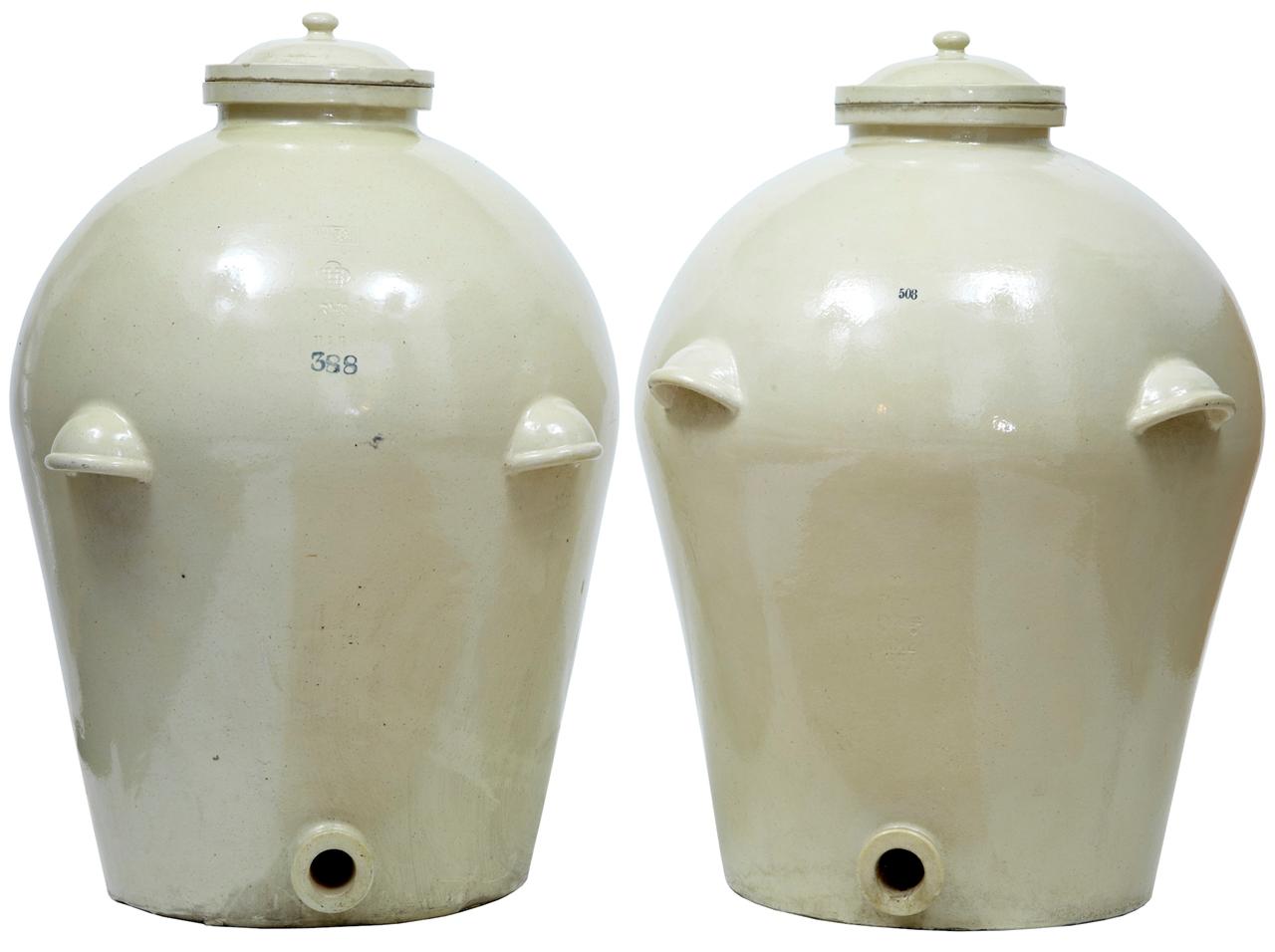 Pair of Massive Doulton London RMS Shipping Stoneware Alcohol Jar Vat