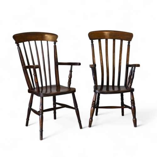 Pair of Matched English 19th Century Oak Farmhouse Arm Chairs