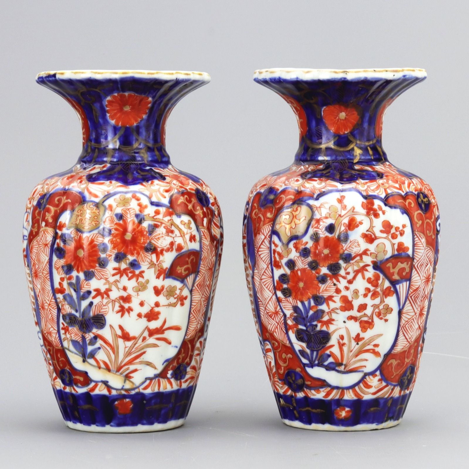 Pair of Meiji Period Japanese Imari Reeded Vases C.1890 (1 of 1)