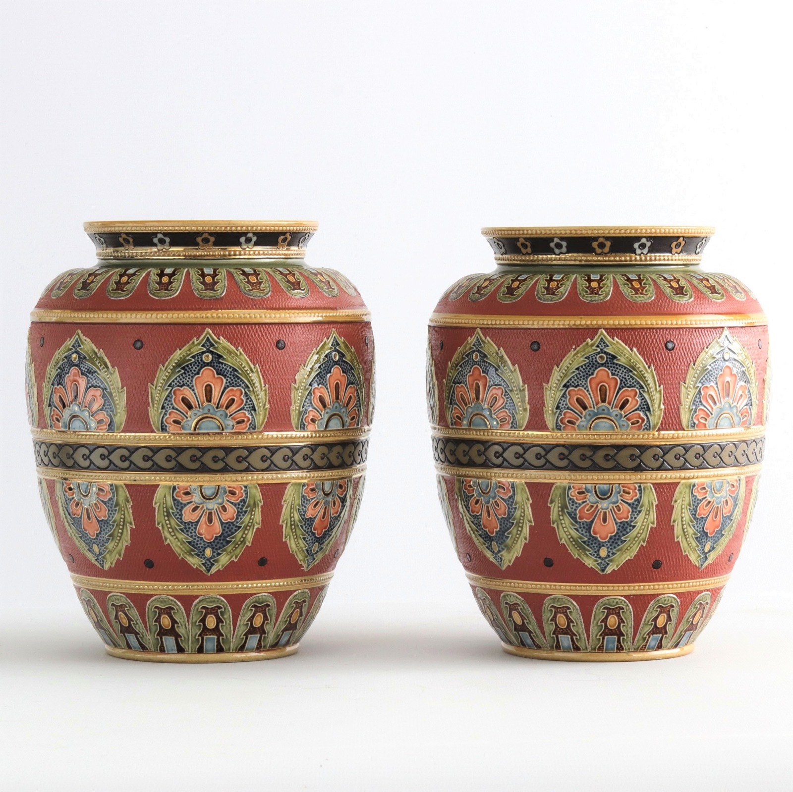 Pair of Mettlach 'Villeroy & Boch' Stoneware Relief Decorated Vases 1916