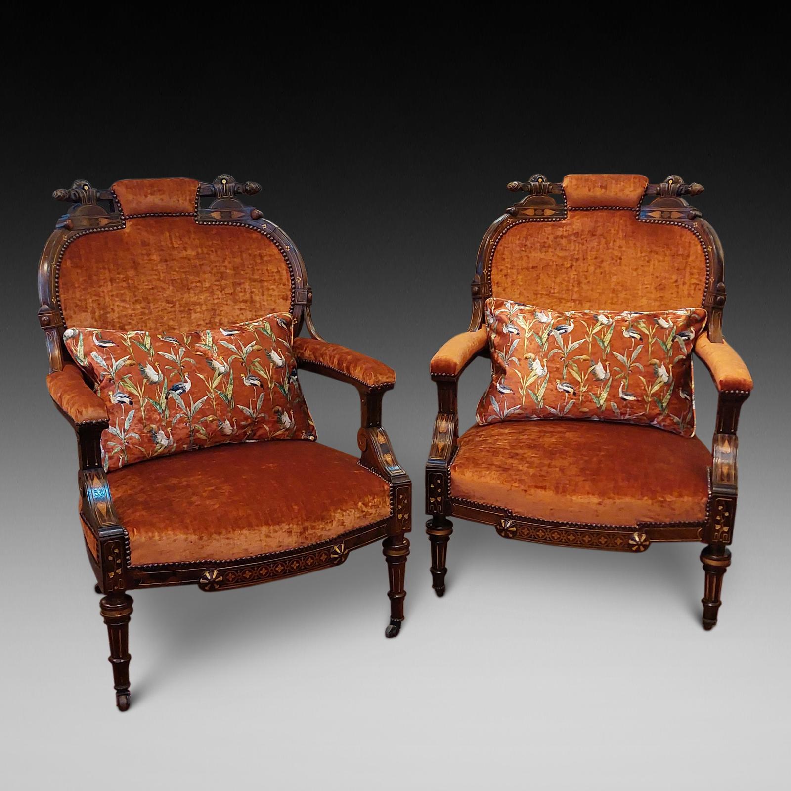 Church Street Antiques has clarified that the Pair of Mid 19th C Victorian Rosewood & Parcel Gilt Easy Arm Chairs (LA561946) is genuinely of the period declared with the date/period of manufacture being Mid Victorian
