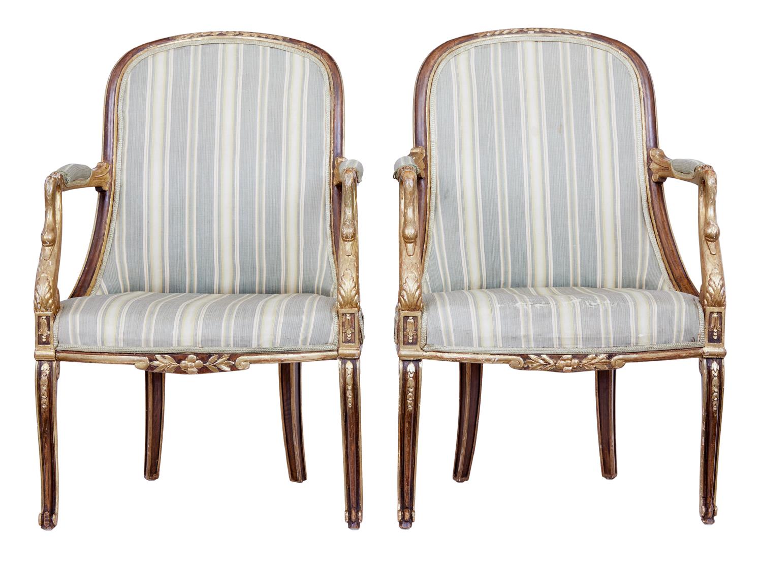 Pair of Mid 19th Century French Walnut & Gilt Armchairs