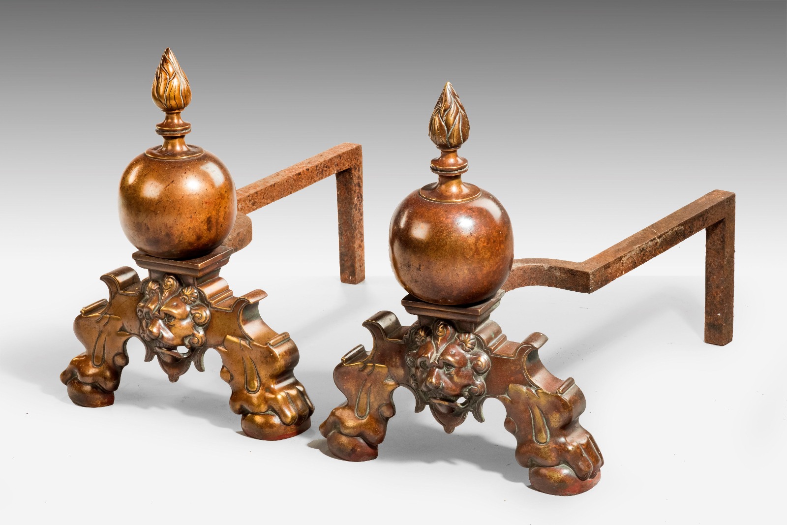 Pair of Mid 19th Century Massive Steel Andirons / Fire Dogs