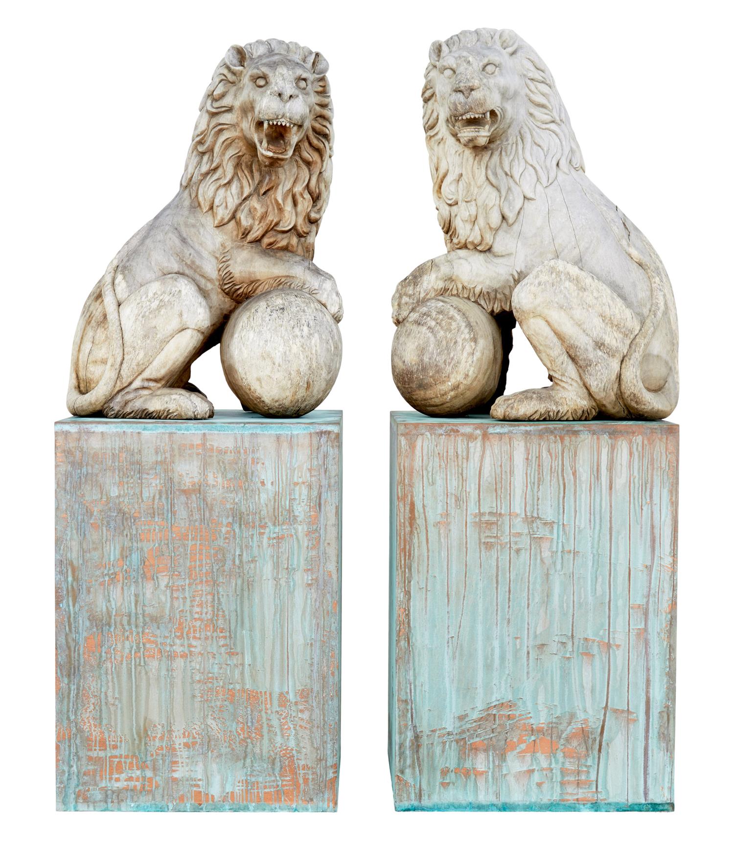 Pair of Mid 20th Century Carved Solid Wood Lions (1 of 12)