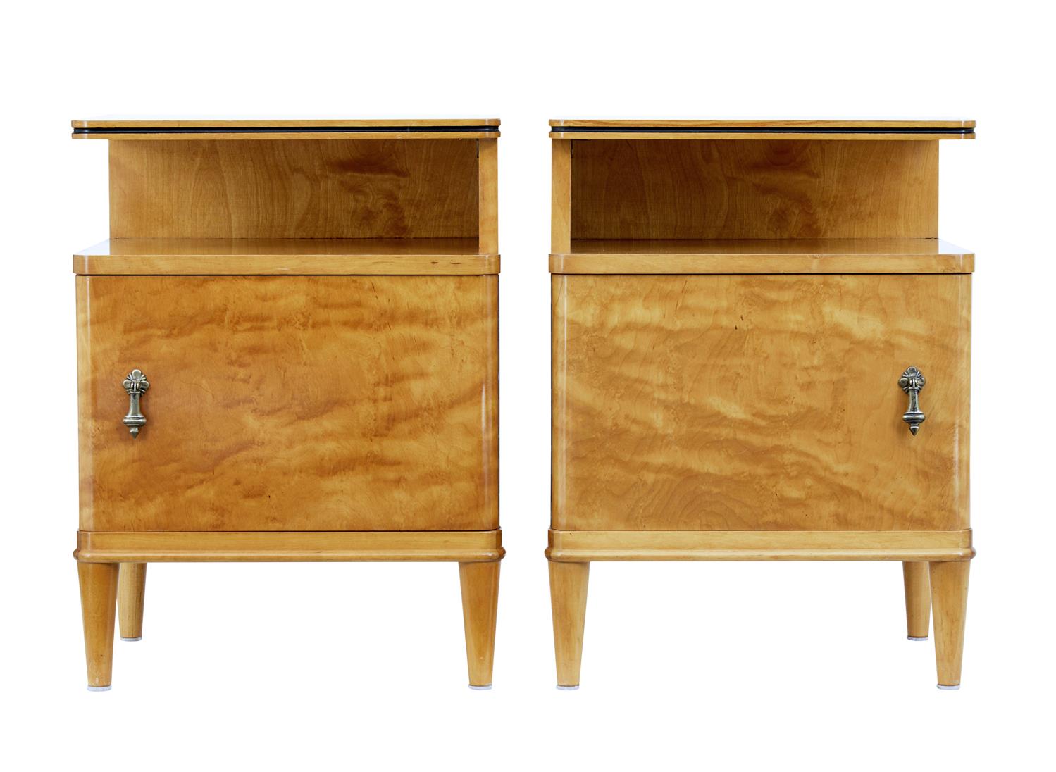 Pair of Mid 20th Century Deco Inspired Birch Bedside Tables