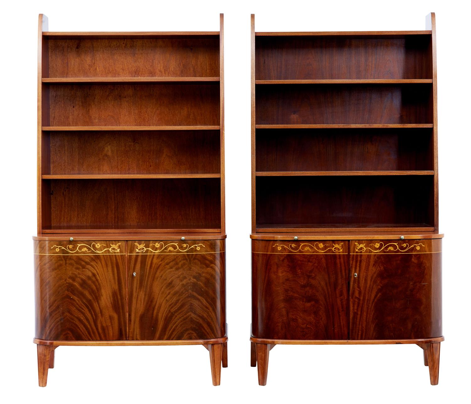 Pair of Mid 20th Century Flame Mahogany Scandinavian Bookcases by Bodafors