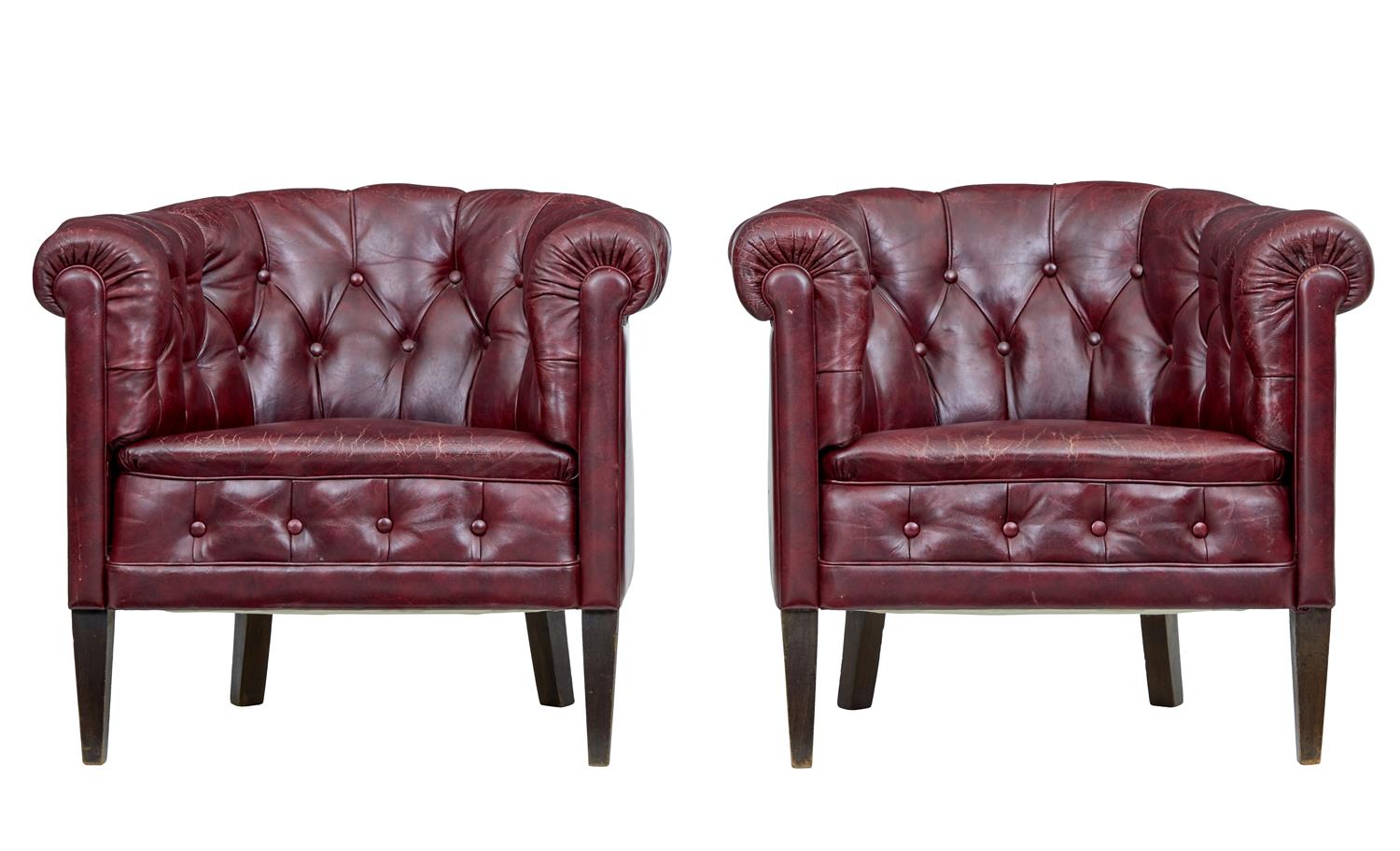 Pair of Mid 20th Century Red Leather Club Armchairs
