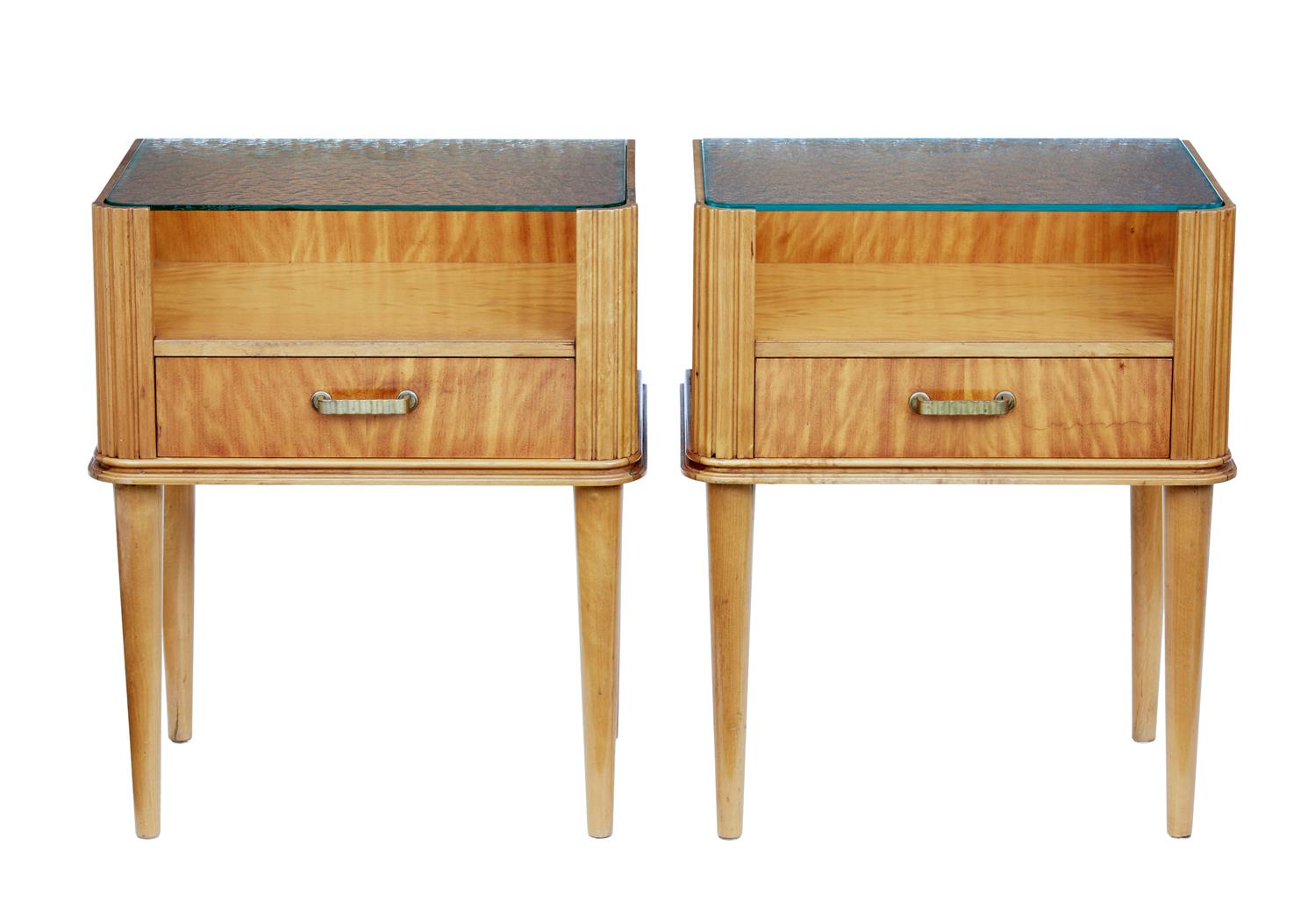 Pair of Mid 20th Century Scandinavian Birch Bedside Tables (1 of 6)