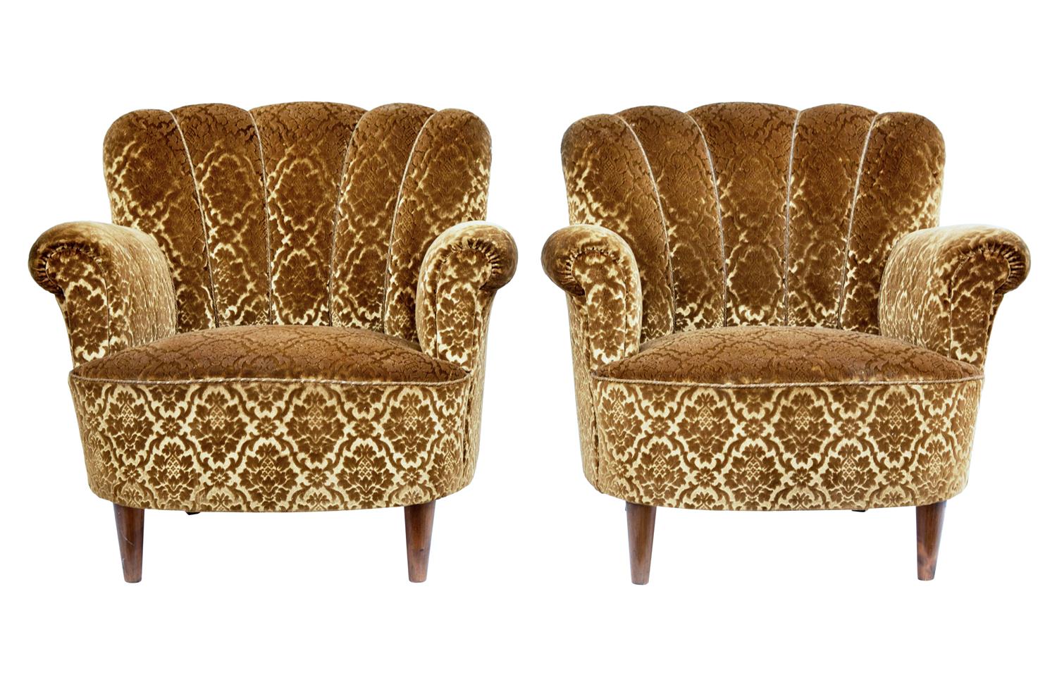 Pair of Mid 20th Century Shell Back Lounge Armchairs