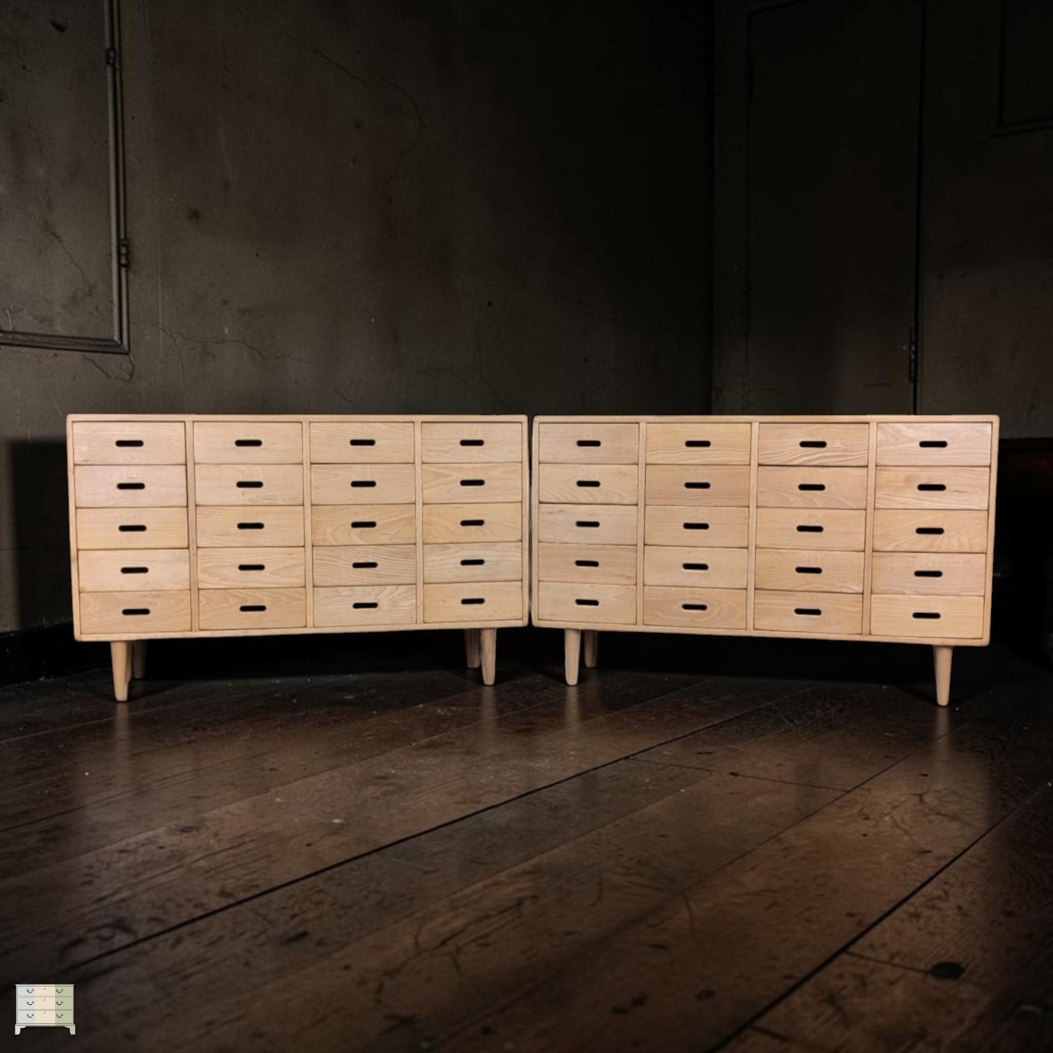 Pair of Mid Century Beech Bank of Drawers by James Leonard