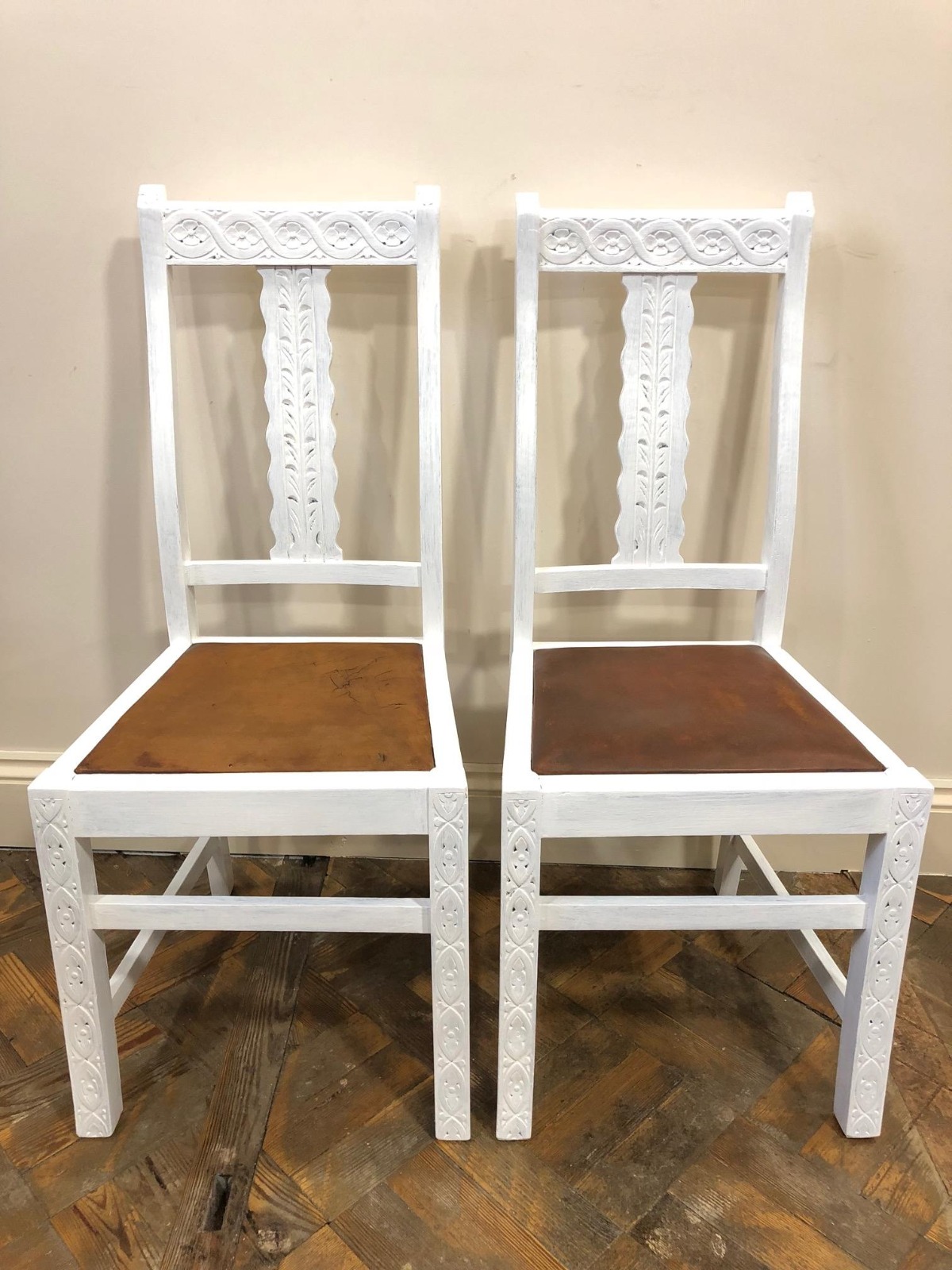 Pair of Mid Century Painted Oak Chairs with Drop in Leather Seats (1 of 1)