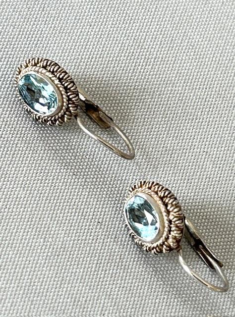 Pair of Mid-century Silver & Aquamarine Leverback Earrings