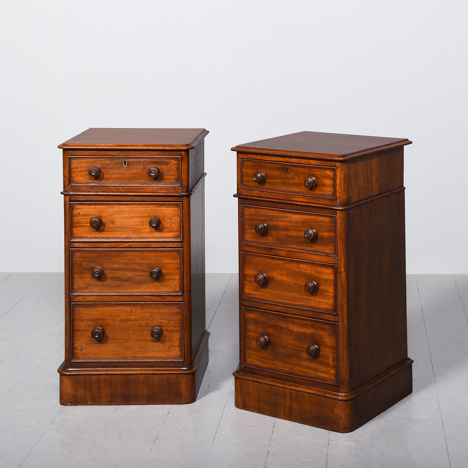 Pair of Mid Victorian Mahogany Four-drawer Small Chests of Drawers / Bedside Cabinets