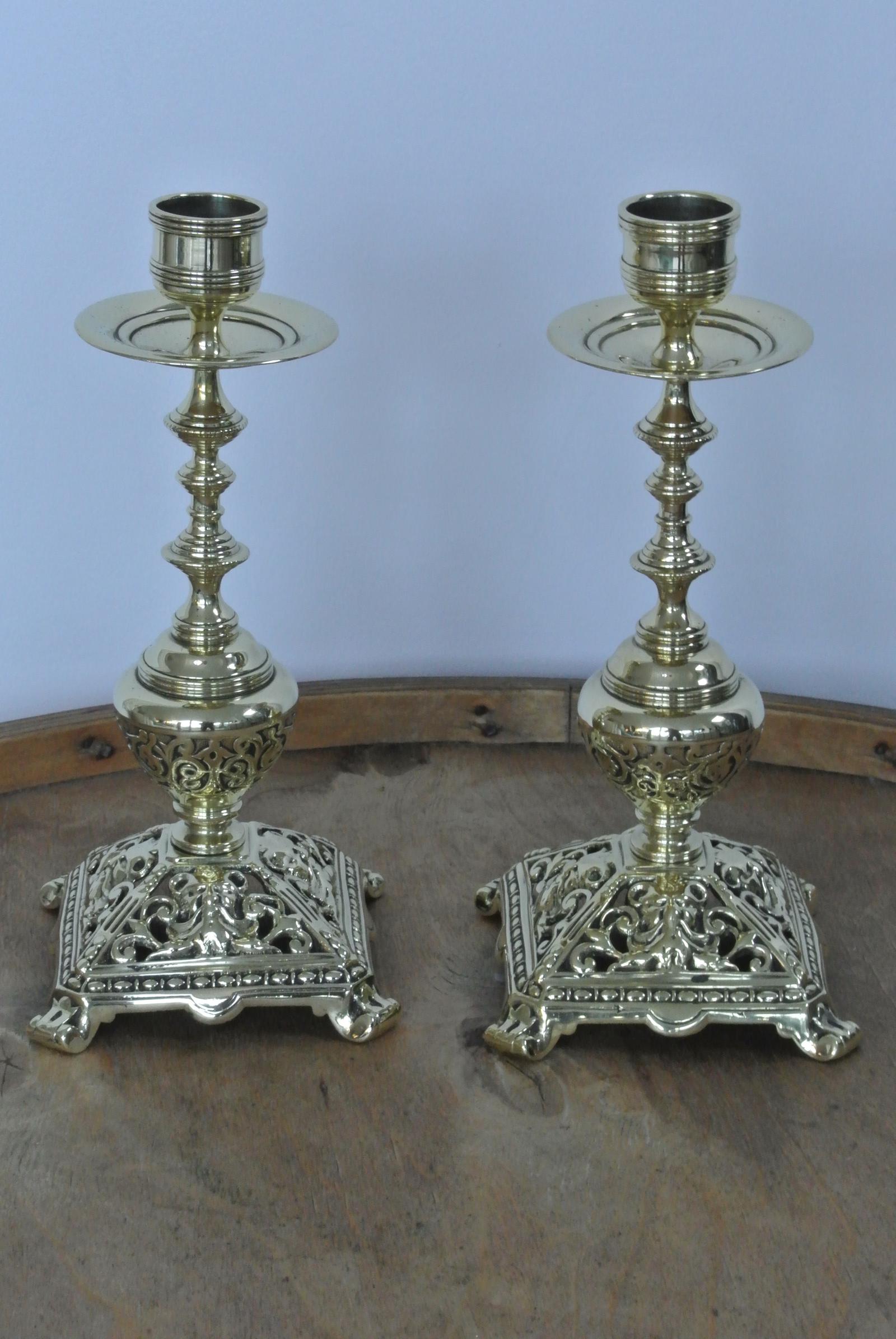 Pair of Mid Victorian William Tonks & Sons Brass Candlesticks Registered 1856