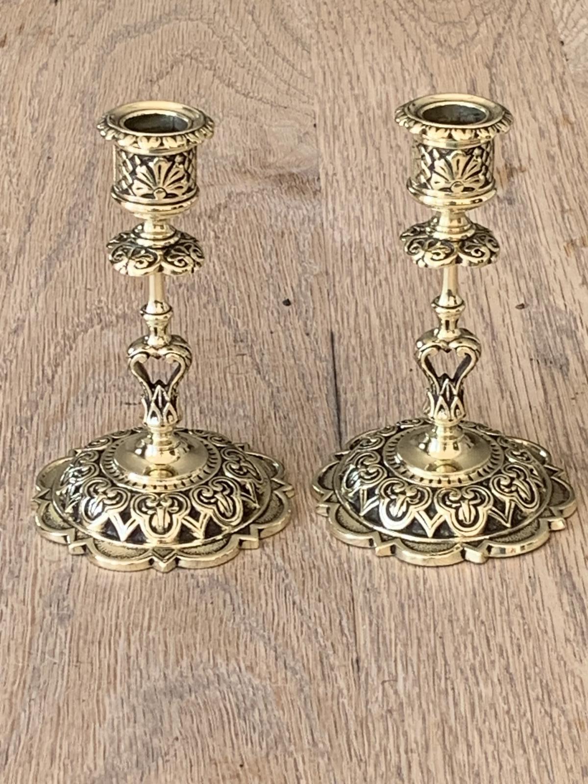 Pair of Mid Victorian William Tonks & Sons Brass Candlesticks Registered 1868