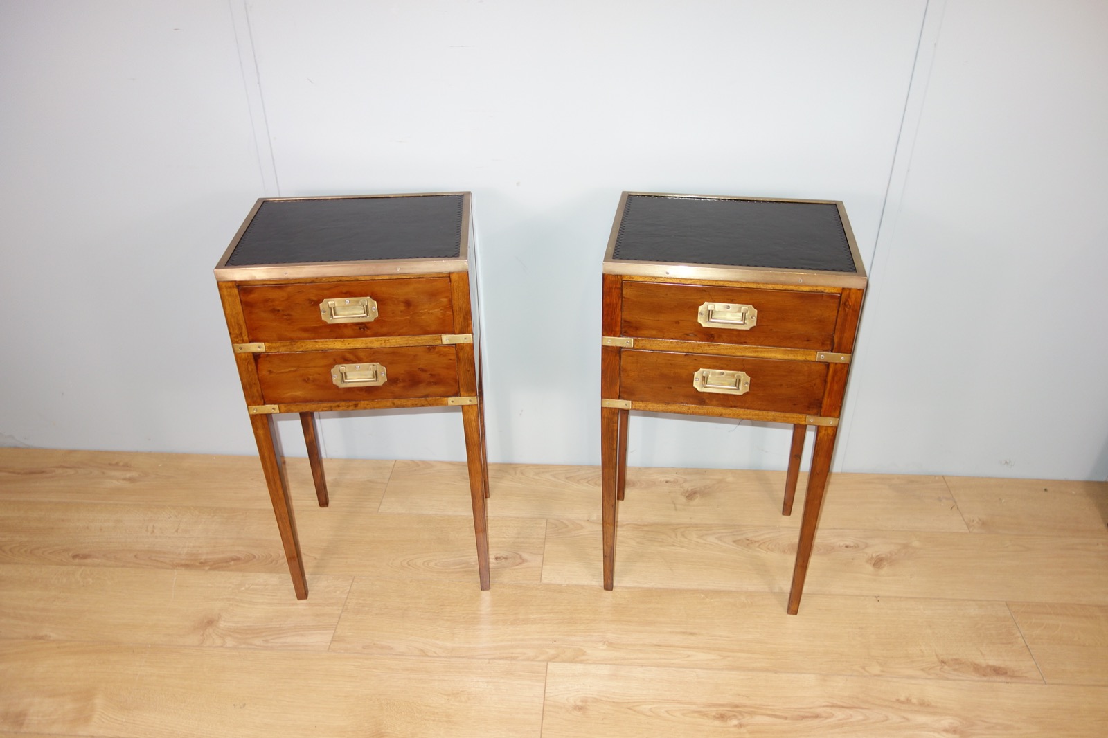 Pair of Military Brass & Leather Bedside Tables (1 of 8)