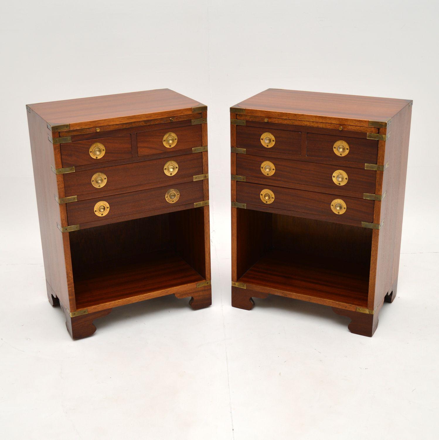 Pair of Military Campaign Style Mahogany Bedside Cabinets