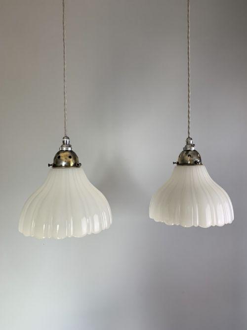 Pair of Milk Glass Pendant Ceiling Lights, Rewired