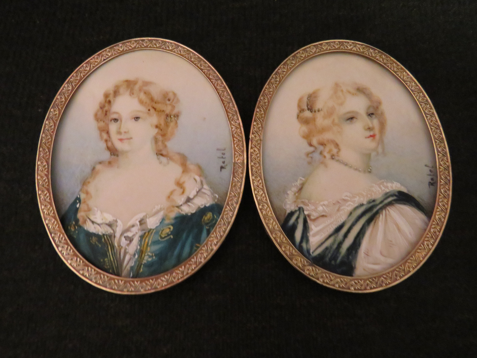 Pair of Miniature Portraits Court of Louis XVI Hand Painted