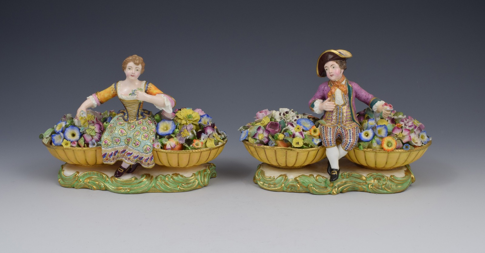 Pair of Minton Figures Sitting Between Baskets of Flowers Models 58 (1 of 1)