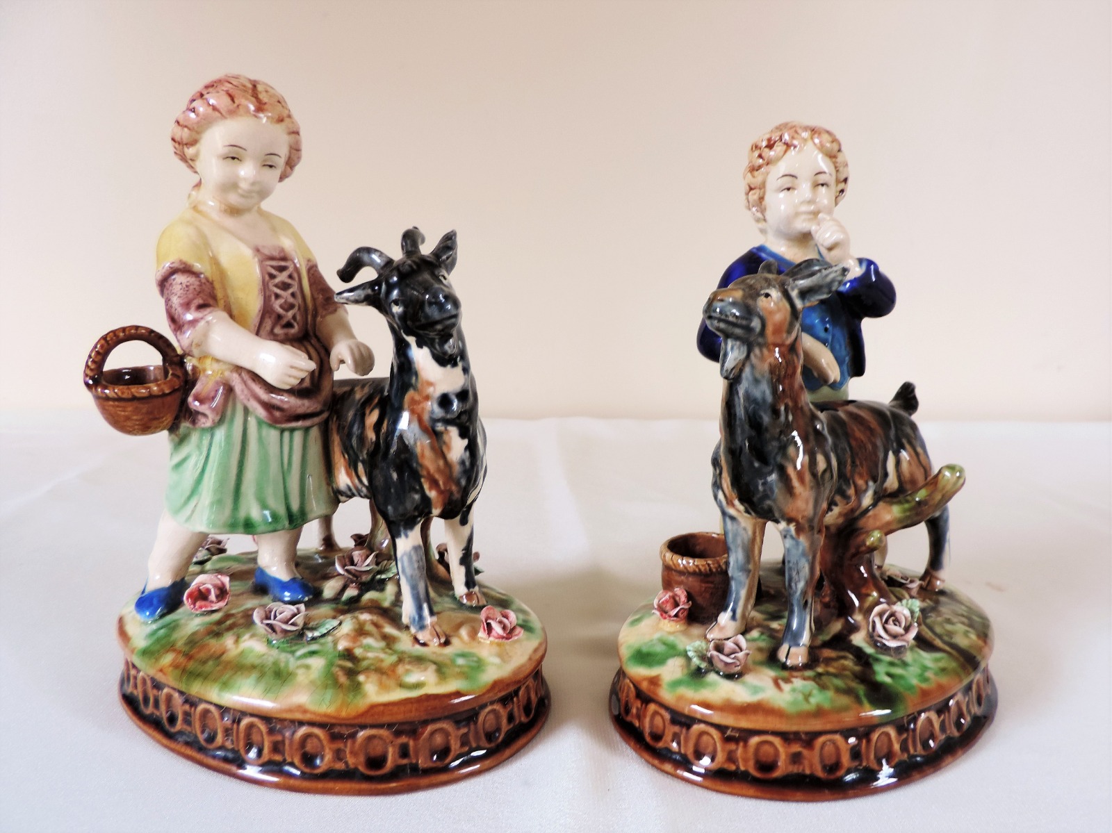 Pair of Minton Majolica Figurines Children with Goats No. 594 C.1870