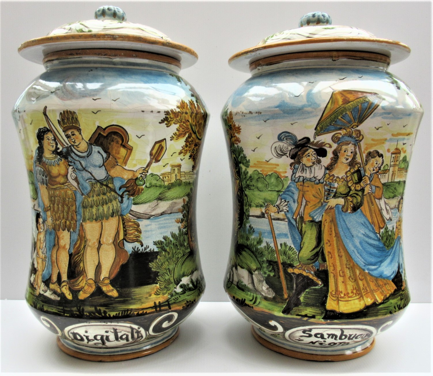 Pair of Monumental Drug Jars 'Albarelli' Italian Majolica, Castelli c.1800