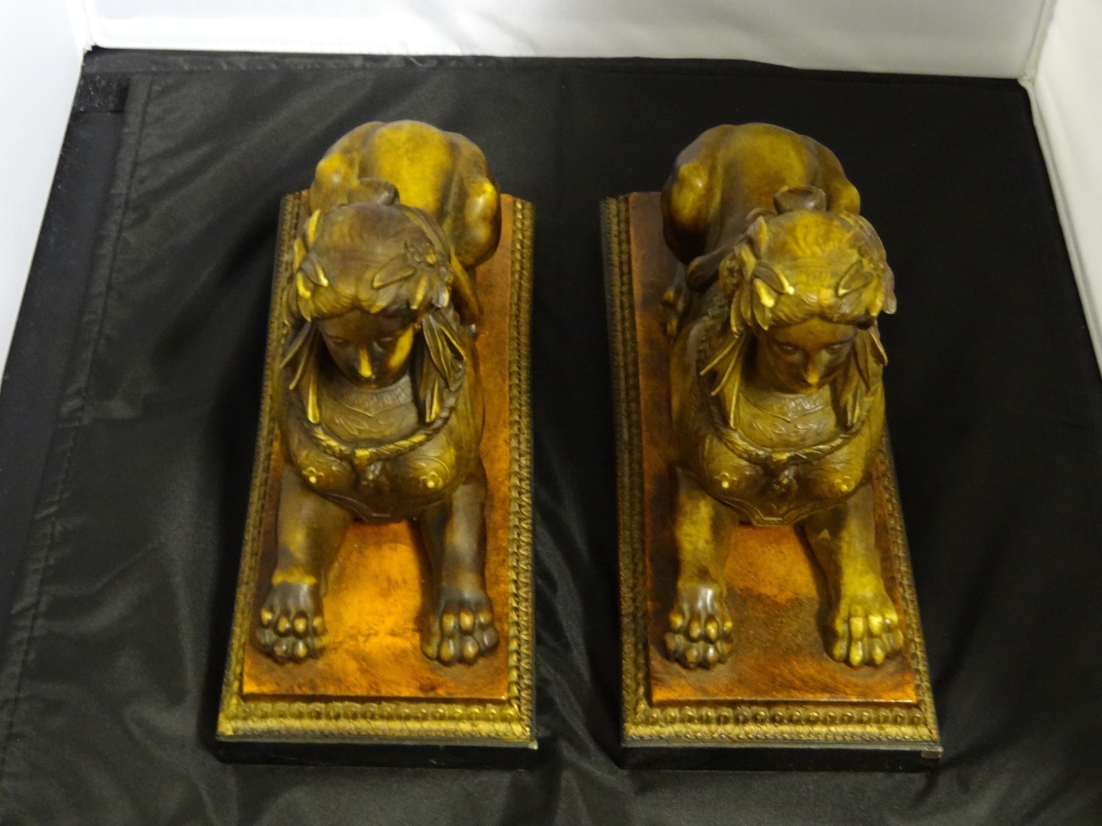 Pair of Moulded Resin Sphinx Bookends, Chatsworth, 20th Century