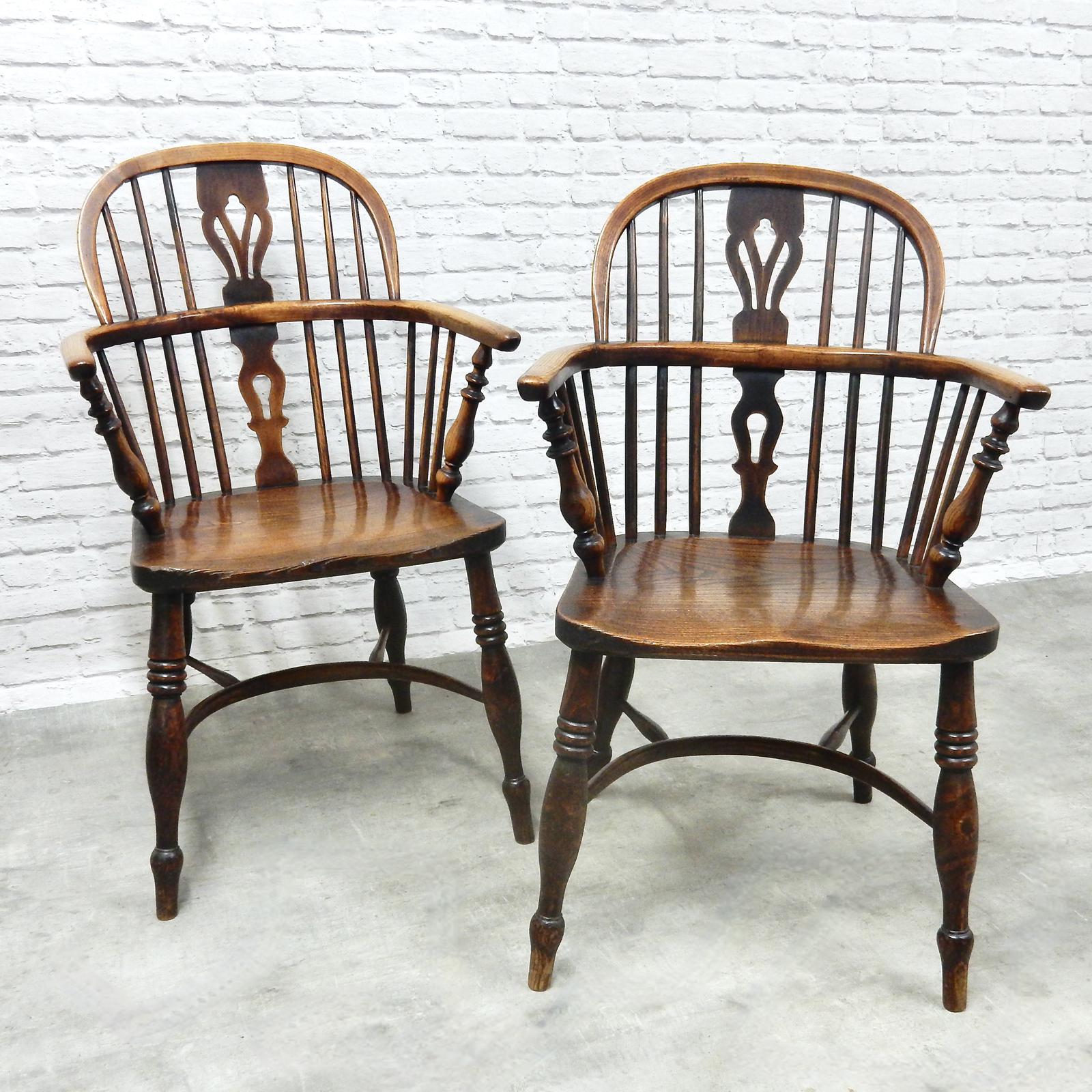 Pair of Named Windsor Lowback Armchairs, F Walker of Rockley
