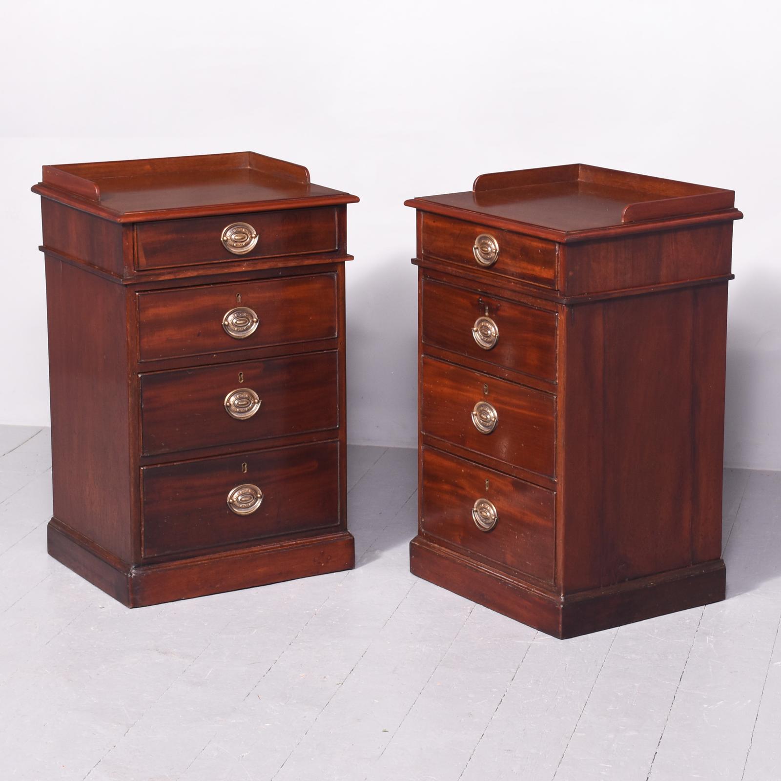 Pair of Neat Size Mahogany Chest of Drawers with Three-quarter Galleries