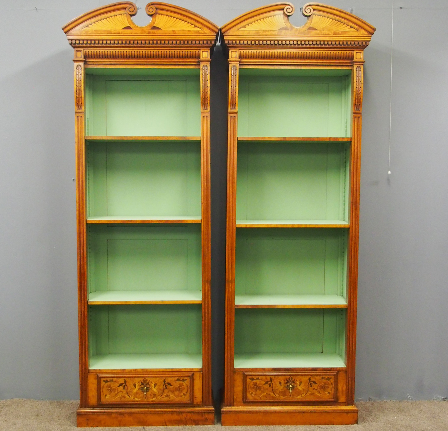 Pair of Neoclassical Style Satinwood Open Bookcases